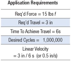 Sizing a linear actuator and estimating life are done quite easily once you understand the basic needs of the application. The following is the minimum information needed to begin this process.
