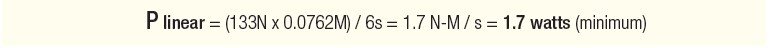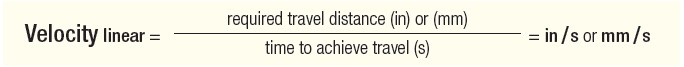 After calculating the mechanical power needed to meet application requirements, the linear velocity in inches per second is calculated using the following equation.
