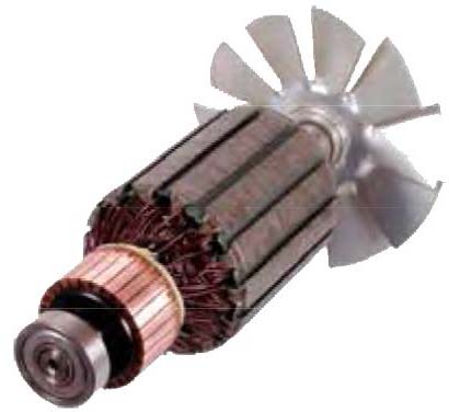 Another version of this motor replaces the commutator and brushes with hall cells and a magnetic ring magnetized with many poles. See Figure 8. The hall cell is a magnetic switch which switches on in the presence of a south magnetic field. This energizes the proper coil to take the next step. This is called a brushless DC motor. A photo of a brushless DC motors is shown in Figure 9.