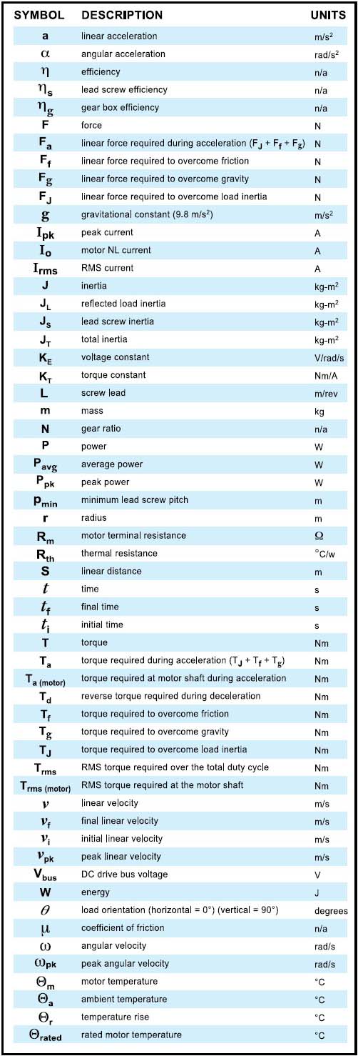 This paper focused on properly sizing a motor for a relatively simple single axis linear motion application. Although the principles are identical for a more complex system such as an X-Y table or a multi-axis precision pick-and-place mechanism, each axis will need to be analyzed for load independently. Another consideration outside the scope of this article is how to choose an appropriate safety factor in order to meet the desired life of the system (number of cycles). System life isn’t just a function of the motor size, but also the other mechanical elements in the system such as the gearbox and lead screw assembly. Other factors such as positioning accuracy, resolution, repeatability, maximum roll, pitch, and yaw, etc. are all important considerations to insure the linear motion system meets or exceeds the application goals.