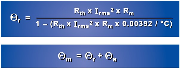 Ѳr = [(Rth x Irms 2 x Rm) / (1-(Rth x Irms 2 x Rm x 0.00392/°C))]