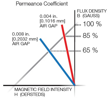 The second advantage is within the motor’s magnetic circuit. The construction of a hybrid motor actuator allows for the air gap between the rotor and stator assembly to be about ½ of what the Can Stack Motor actuator can be manufactured to. The air gap in the hybrid design is typically 0.003 to 0.004 inch [0.0762 to 0.1016 mm] compared to 0.007 to 0.008 inch [0.1778 to 0.2032 mm] in the Can Stack construction. The smaller air gap provides a more efficient magnetic coupling between the rotor and stator resulting in higher torque. See Figures 3 and 4.
