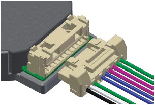 Motors in specific and motion control systems generally are subject to vibration and other environmental factors that can impact the wiring. This has a tendency to loosen standard connections over time and possibly lose connectivity all together. Using a low profile Molex® CLIK-Mate™ connector to provide a positive locking connection ensures that there will be no unplugging of the wires due to either vibration or other mechanical action up to and including strain. In addition, the chosen connector always has the same 10 pin arrangement so, like the other choices, all encoders are interchangeable. This is true for both the standard radial lead wire arrangement and the axial lead wire arrangement.