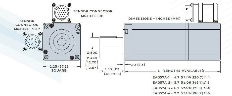 The next three positions indicate the effective frame size ... so 057 indicates a motor with a 57-mm diameter. The motor may be square or round — and this geometry is shown in mechanical drawings.