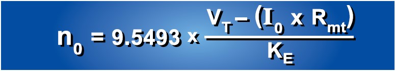 n0 = 9.5493 x [(VT – I0 x Rmt( f )) / KE( f )]