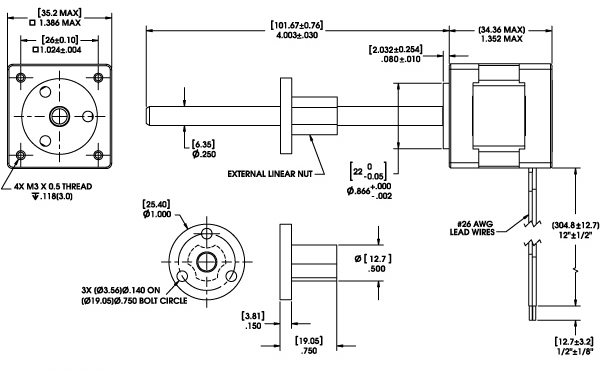 Note A: Lead screw extends beyond encoder on specific captive and non-captive motors. External linear shaft extension is available upon request.