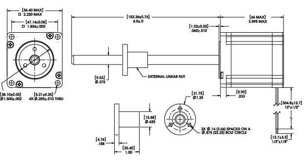 Note A: Lead screw extends beyond encoder on specific captive and non-captive motors. External linear shaft extension is available upon request.