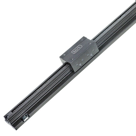 Kerk RGS Linear Guides provide a strong, stable platform for a variety of linear motion applications. The RGS Linear Guide is designed to easily mount to any flat surface, or bridge free spans, with a convenient, easy-access carriage. The splined aluminum profile, with Kerkote® TFE coating, combines low friction linear guidance with torsional stability. This proven combination of materials assures exceptionally long life without the need for adjustment, lubrication or maintenance. The simplicity of the RGS Linear Guide makes it both easy to use and a great value. The Kerk® RGS Linear Guides are perfect companions to the Kerk® RGS series of screw-driven linear slides.