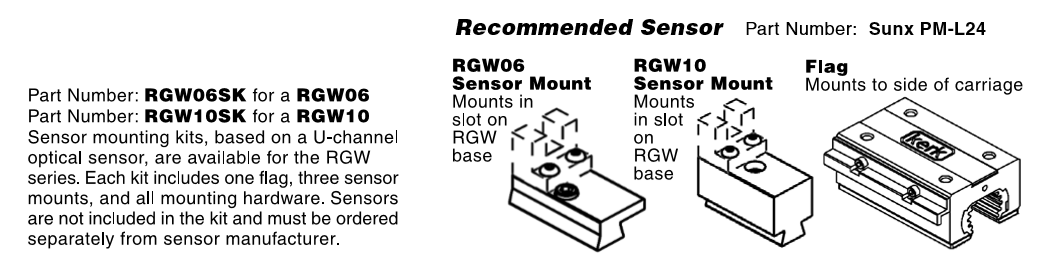 Kerk RGW Linear Guides provide a strong, stable platform for a variety of linear motion applications. The RGW Linear Guide is designed to easily mount to any flat surface, or bridge free spans, with a convenient, easy-access carriage. The splined aluminum profile, with Kerkote® TFE coating, combines low friction linear guidance with torsional stability. This proven combination of materials assures exceptionally long life without the need for adjustment, lubrication or maintenance. The simplicity of the RGW Linear Guide makes it both easy to use and a great value. The Kerk® RGW Linear Guides are perfect companions to the Kerk® RGW series of screw-driven linear slides.